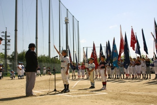 「第19回京田辺市市長旗争奪リーグ戦学童野球大会」の開会式が平成27年5月5日に田辺公園野球場で行われました。