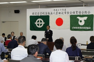 6月2日(金)平成29年度特定非営利活動法人京田辺市社会体育協会総会を開催いたしました。来賓に石井市長をはじめ、市議会議長、府議会議員などにお越しいただきました。